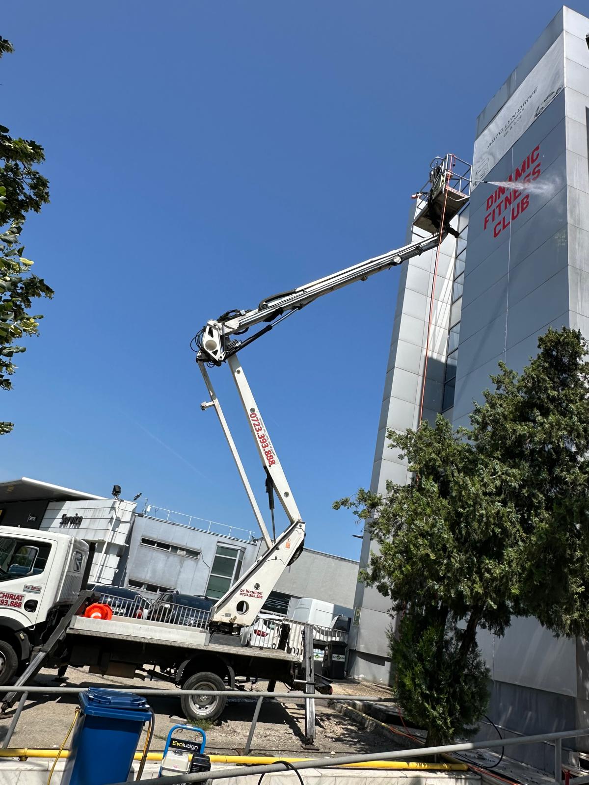 Lucrăm cu platforme telescopice, schele și acces pe frânghie (alpinism utilitar) până la înălțimi de 50+ metri.