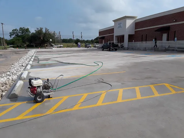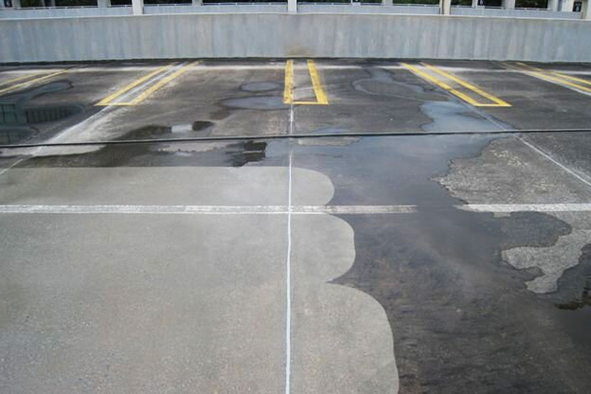 Curățare forțată cu echipamente de 200-400 bar pentru beton și asfalt.